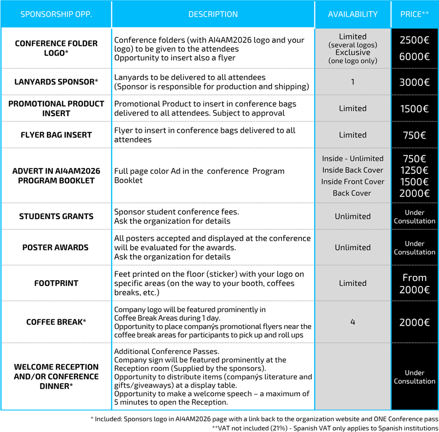 | AI4AM2026 other sponsoring opportunities |